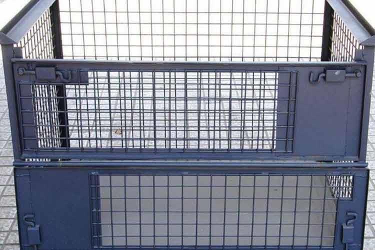 2、前面可实现半开或全开门,便利堆叠时货物存取,还可设计为两开门式仓储笼。